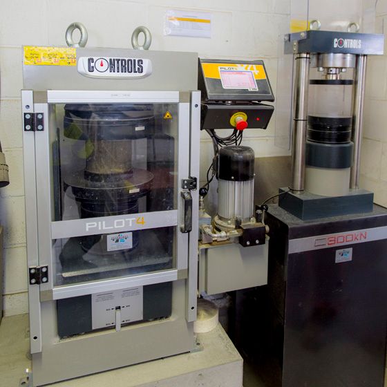 In ons eigen labo, waar alle laboratorium- en meetapparatuur conform is aan de eisen van BENOR, KOMO EN CE, worden alle controleproeven uitgevoerd op zowel vers als verhard beton. Ook grondstoffen worden hier getest.