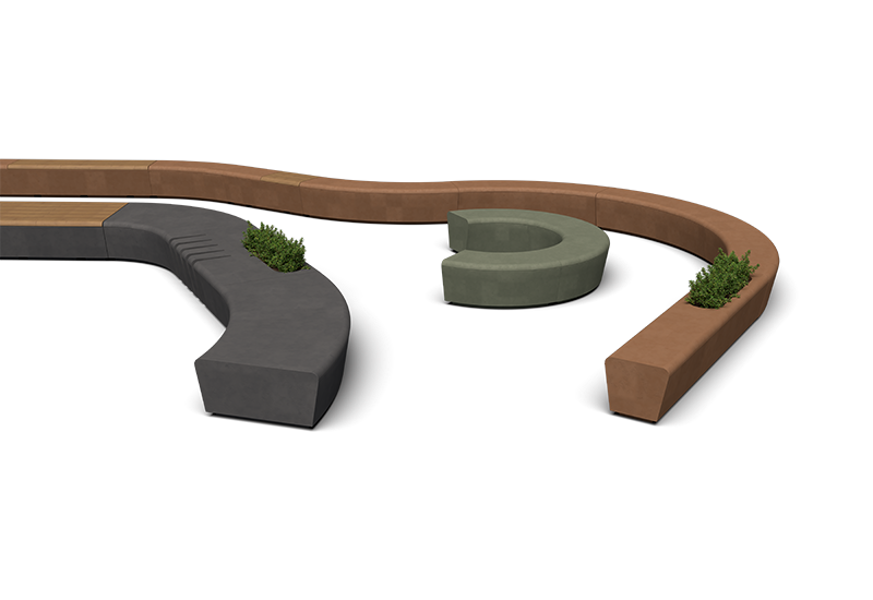 - Architectonisch beton biedt meer vrijheid in kleur, textuur en afwerking, zodat het zitmeubilair perfect aansluit bij de omgeving en het ontwerpconcept.