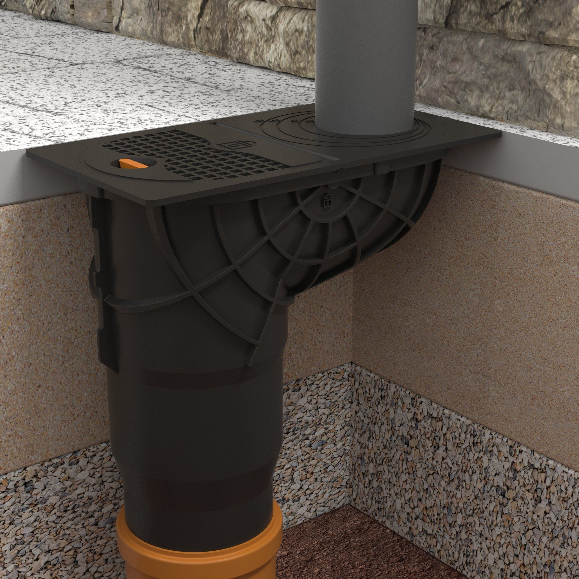 Het L-vormige afvoersysteem is bovenaan voorzien van versterkte ribben. Hierdoor kan de betonnering zich stevig rond het polypropyleen hechten en zit alles stevig verankerd, wat zorgt voor extra stabiliteit en een naadloze afwerking die niet gaan verzakken.