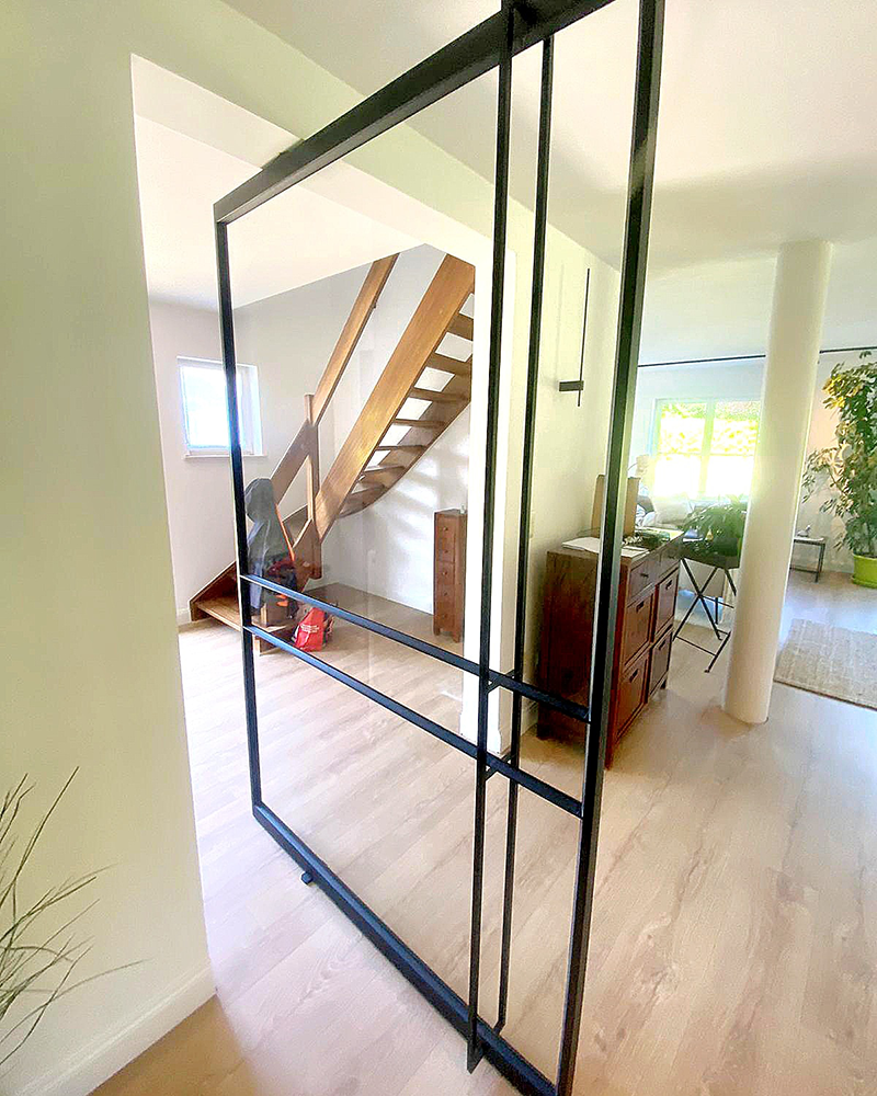 - Stalen binnendeuren met glas. Het glas laat natuurlijk licht binnen en creëert een open gevoel, perfect voor ruimtes waar je de inval van natuurlijk licht wil maximaliseren.
