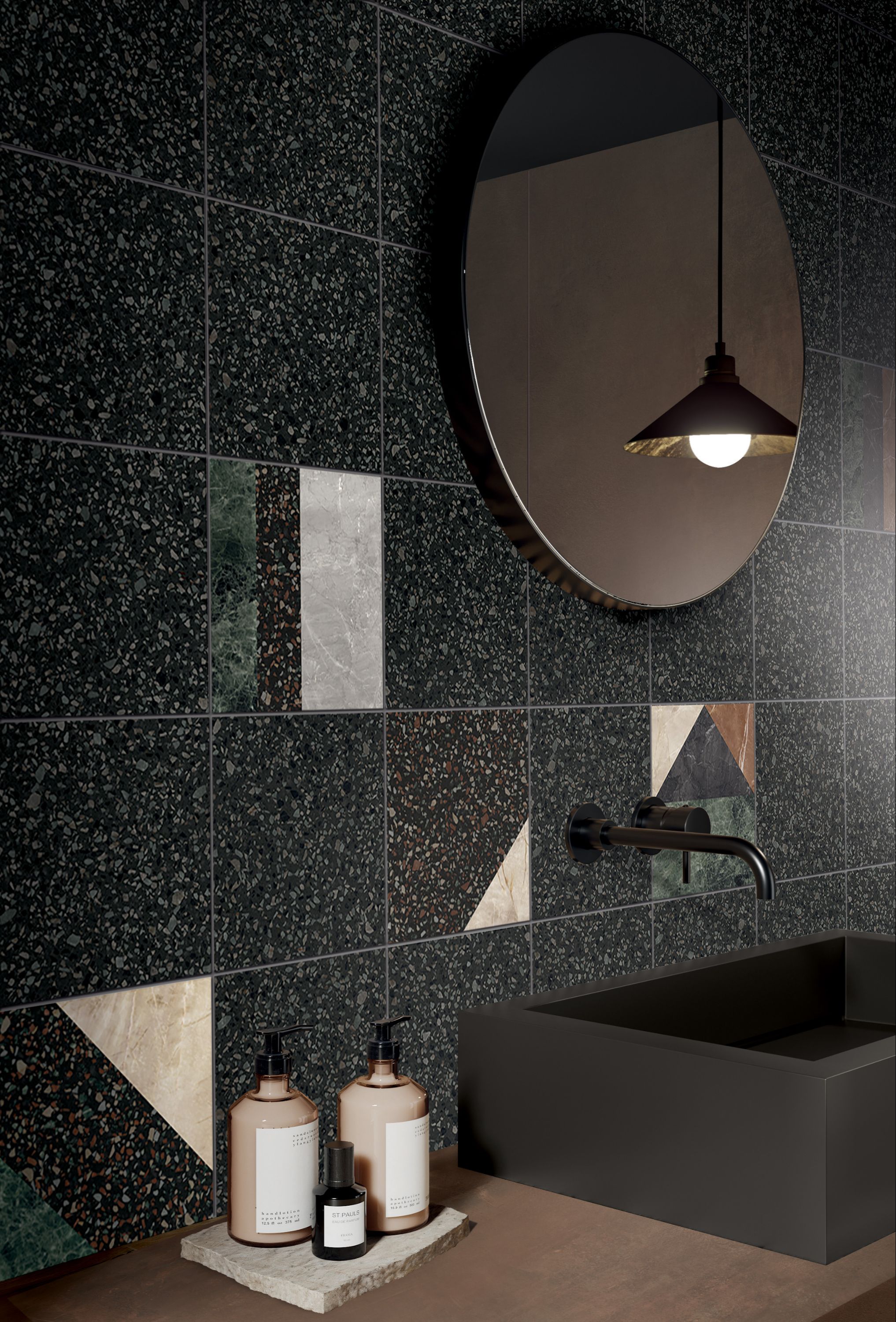 Ook in badkamers zijn terrazzo tegels een populaire keuze. En terecht. Ze zijn bestand tegen water en vocht, waardoor ze ideaal zijn voor vochtige ruimtes. Wil je nog een stapje verder gaan? Kies dan voor accessoires in terrazzo, zoals tandenborstelhouders en zeepbakjes.