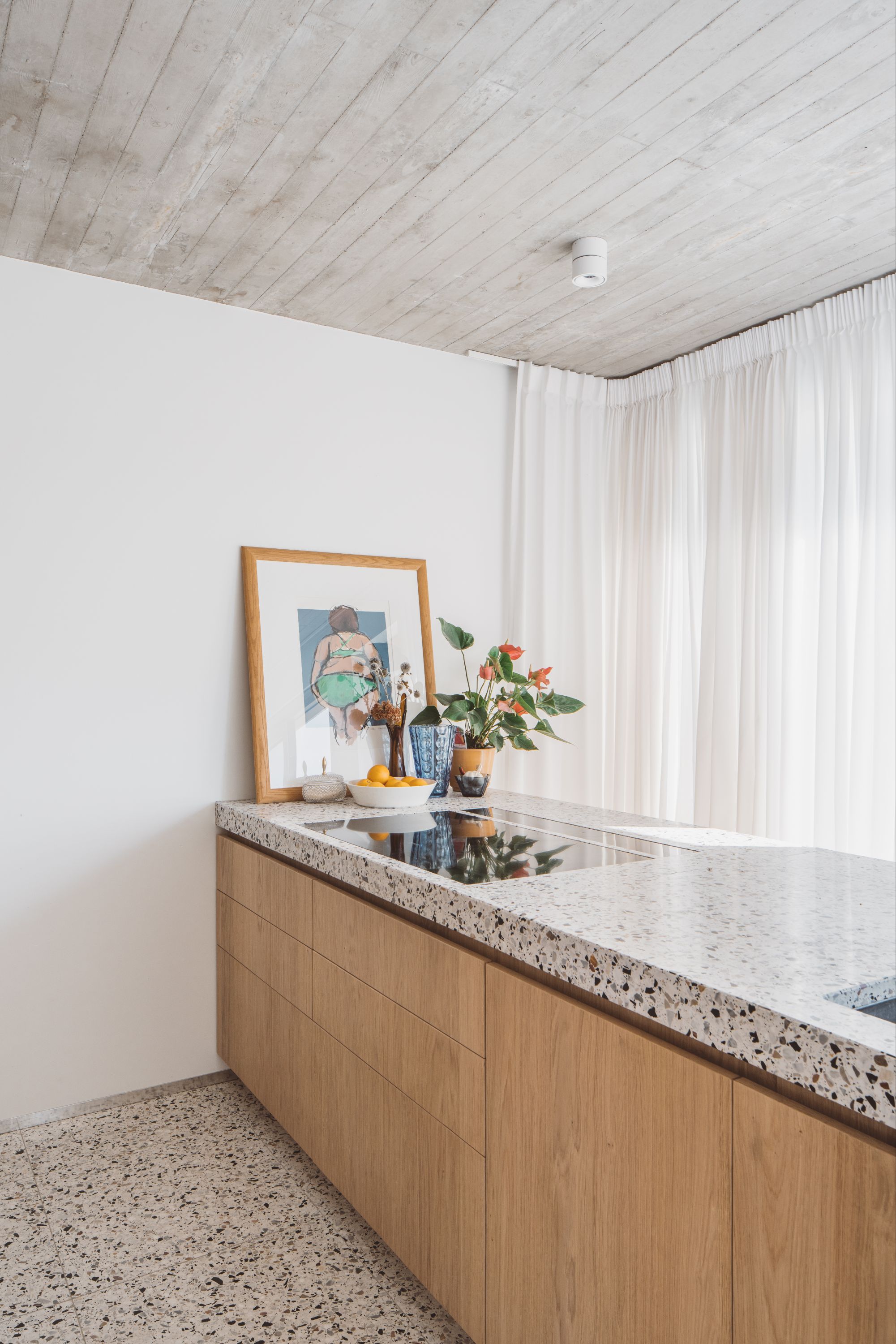 Terrazzo tegels worden erg vaak gekozen voor de keuken. Ze zijn bestand tegen vlekken, stoot- en krasbestendig en erg gemakkelijk in onderhoud. Zelfs voor het werkblad of de spatwand wordt vaak terrazzo gebruikt. Bovendien zijn de tegels verkrijgbaar in talloze kleuren, patronen en texturen, zodat je gemakkelijk de look vindt die perfect bij jouw keuken past.