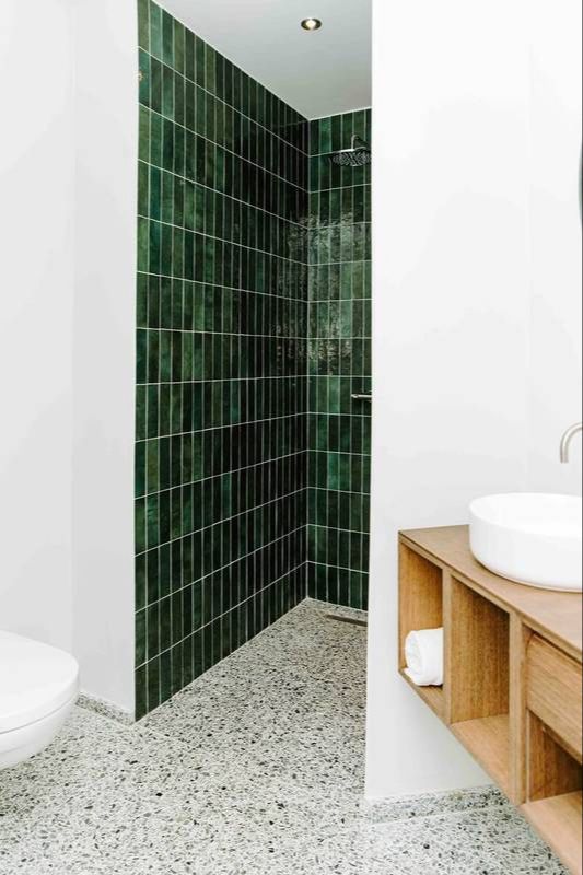 Ook in badkamers zijn terrazzo tegels een populaire keuze. En terecht. Ze zijn bestand tegen water en vocht, waardoor ze ideaal zijn voor vochtige ruimtes. Wil je nog een stapje verder gaan? Kies dan voor accessoires in terrazzo, zoals tandenborstelhouders en zeepbakjes.