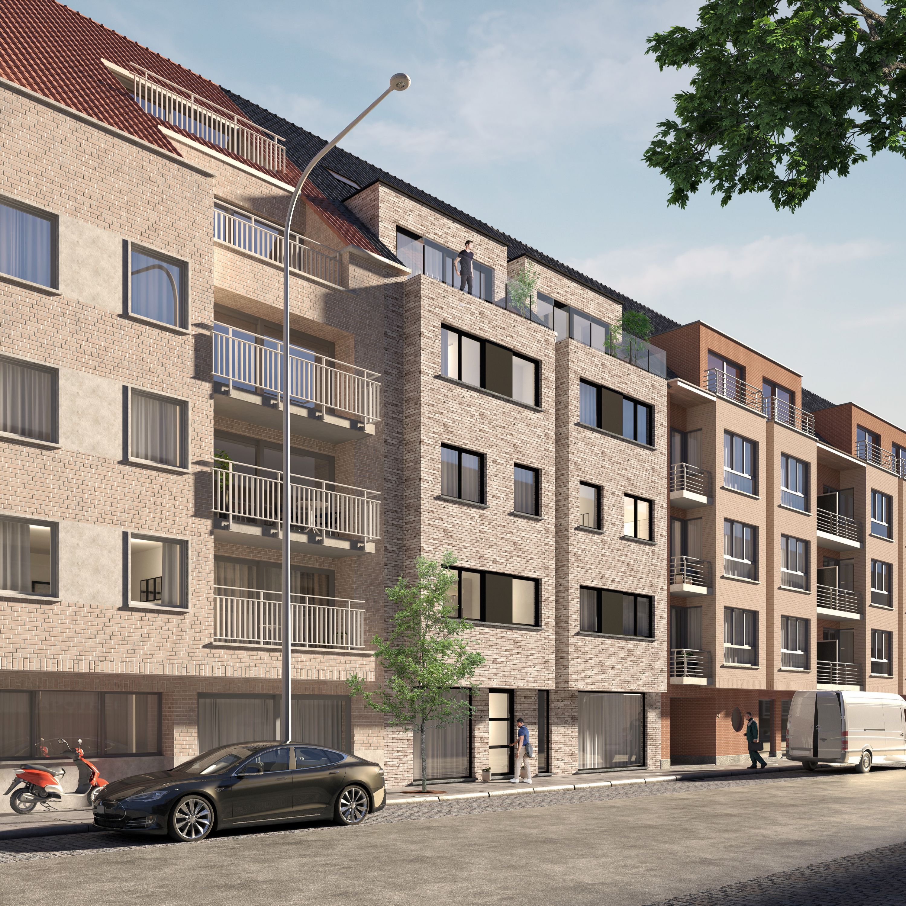 Voor de residentie Margriet in Assebroek bestelde ik ondertussen al een trap in gewassen antracietgrijs beton.