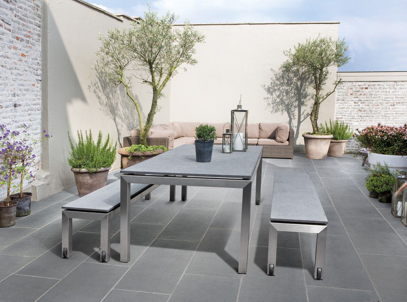 Natuursteen terrastegels zijn authentiek, stevig en levendig. En zoals de naam verraadt, zijn ze vervaardigd uit natuurlijke gesteentes: blauwsteen, kalksteen of graniet,… Dit maakt elke tegel uniek en heel karaktervol. Deze tegels zijn bovendien heel goed bestand tegen weer en wind. Met een jaarlijkse schoonmaakbeurt kunnen ze er weer tegenaan, ze krijgen zelfs meer karakter met de jaren. Een duurzame investering, dus!