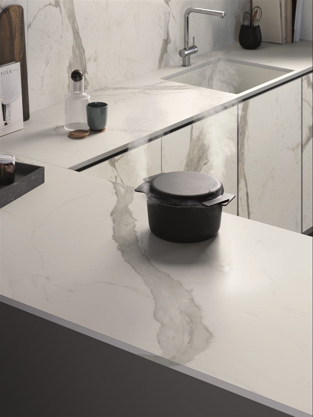 Cooking Surface Prime is het allereerste keramisch gesinterd werkblad met onzichtbaar geïntegreerde inductietechnologie.