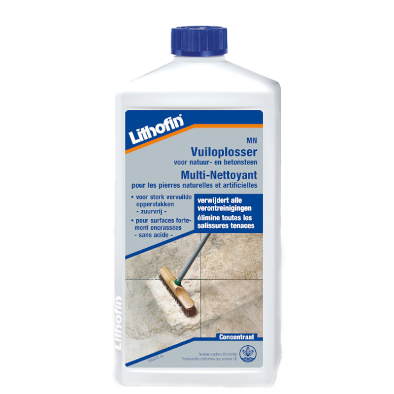 Na het leggen van je terras is het belangrijk om cementresten, vetvlekken en bouwvervuiling grondig te verwijderen. Gebruik hiervoor Lithofin MN Vuiloplosser. Dit krachtige reinigingsmiddel maakt het oppervlak schoon en zorgt voor een optimale basis voor verdere behandeling.