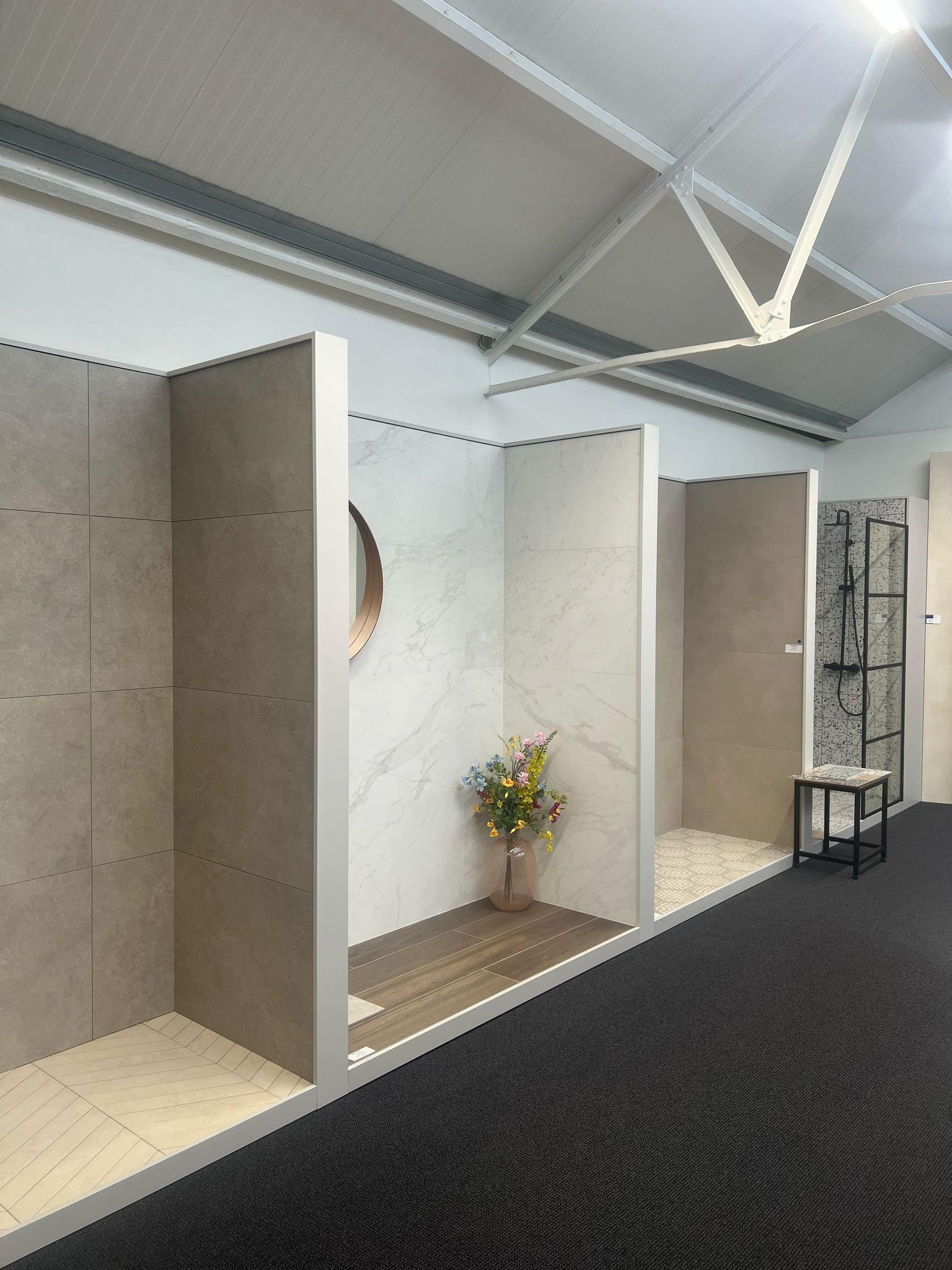 Tegels kies je niet op basis van een foto. In onze showroom krijg je een realistisch beeld van kleuren, formaten en afwerkingen. Bekijk hoe tegels zich gedragen in natuurlijk licht en voel zelf de structuur en kwaliteit.